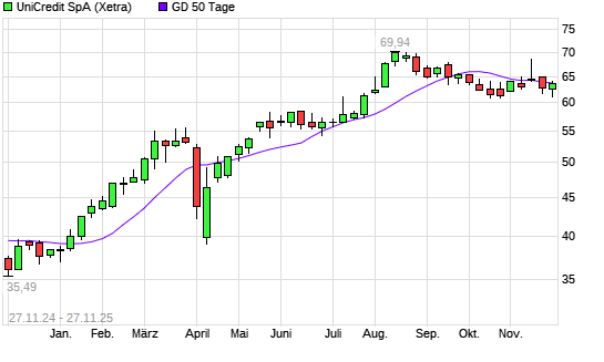 Mit dem Anstieg auf 63,88 EUR hat die UniCredit-Aktie am 26.11.2025 die 50-Tage-Linie nach oben gekreuzt.