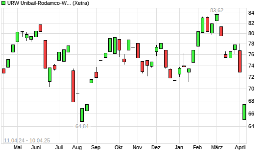 Mit dem Rücksetzer auf 62,40 EUR hat die Unibail-Rodamco-Westfield-Aktie (ISIN FR0013326246) am 09.04.2025 ein neues 12-Monats-Tief erreicht und damit den Kurs vom 05.08.2024 eingestellt.