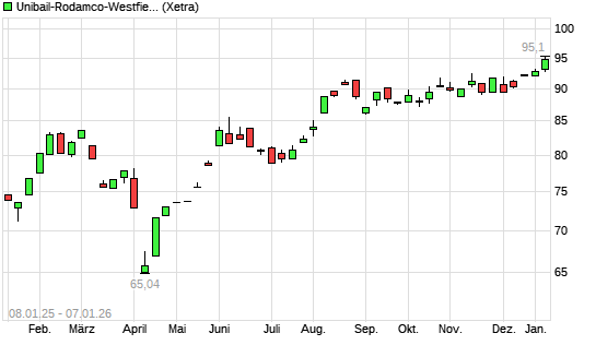 Mit dem Anstieg auf 94,64 EUR hat die Unibail-Rodamco-Westfield-Aktie (ISIN FR0013326246) am 07.01.2026 ein neues 5-Jahres-Hoch erreicht und damit den Kurs vom 02.01.2026 eingestellt.