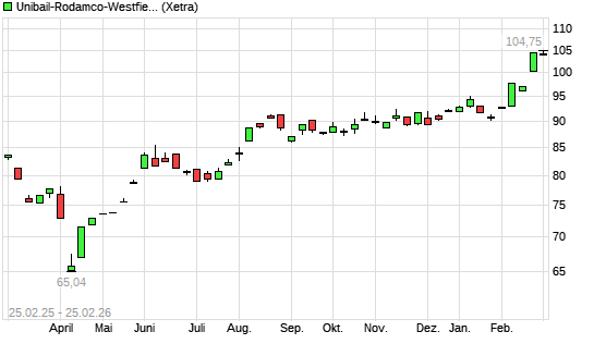 Mit dem Anstieg auf 105,10 EUR hat die Unibail-Rodamco-Westfield-Aktie (ISIN FR0013326246) am 24.02.2026 ein neues 5-Jahres-Hoch erreicht und damit den Kurs vom 23.02.2026 eingestellt.