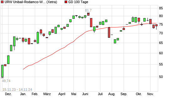 Mit dem Anstieg auf 74,06 EUR hat die Unibail-Rodamco-Westfield-Aktie am 14.11.2024 die 100-Tage-Linie nach oben gekreuzt.
