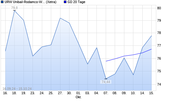 Mit dem Anstieg auf 77,86 EUR hat die Unibail-Rodamco-Westfield-Aktie am 15.10.2024 die 20-Tage-Linie nach oben gekreuzt.