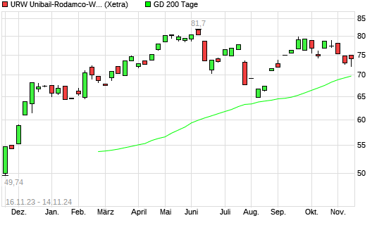 Mit dem Anstieg auf 74,38 EUR hat die Unibail-Rodamco-Westfield-Aktie am 15.11.2024 die 200-Tage-Linie nach oben gekreuzt.