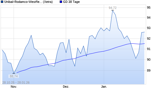 Mit dem Anstieg auf 92,50 EUR hat die Unibail-Rodamco-Westfield-Aktie am 27.01.2026 die 38-Tage-Linie nach oben gekreuzt.