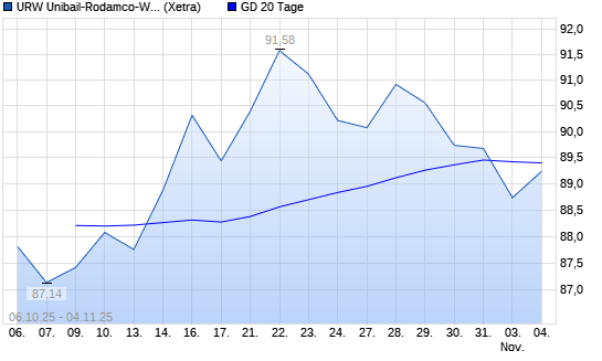 Mit dem Rücksetzer auf 89,34 EUR hat die Unibail-Rodamco-Westfield-Aktie am 05.11.2025 die 20-Tage-Linie nach unten gekreuzt.