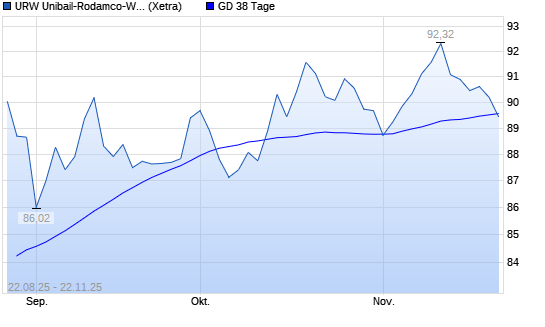 Mit dem Rücksetzer auf 89,32 EUR hat die Unibail-Rodamco-Westfield-Aktie am 21.11.2025 die 38-Tage-Linie nach unten gekreuzt.