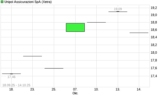 Mit dem Anstieg auf 19,10 EUR hat die Unipol Gruppo Finanziario-Aktie (ISIN IT0004810054) am 15.10.2025 ein neues 10-Jahres-Hoch erreicht und damit den Kurs vom 10.10.2025 eingestellt.
