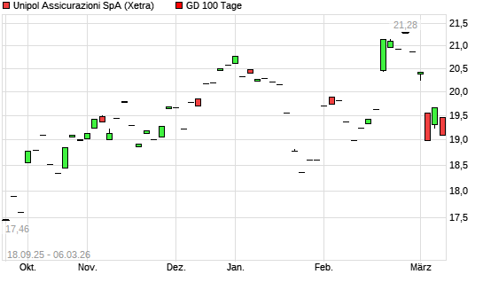 Mit dem Anstieg auf 19,58 EUR hat die Unipol Gruppo Finanziario-Aktie am 05.03.2026 die 100-Tage-Linie nach oben gekreuzt.