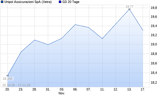 Mit dem Rücksetzer auf 18,96 EUR hat die Unipol Gruppo Finanziario-Aktie am 18.11.2025 die 20-Tage-Linie nach unten gekreuzt.