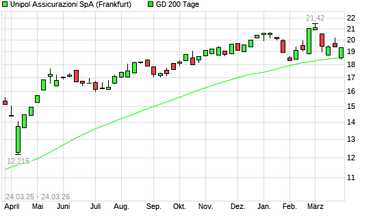 Mit dem Rücksetzer auf 18,46 EUR hat die Unipol Gruppo Finanziario-Aktie am 23.03.2026 die 200-Tage-Linie nach unten gekreuzt.