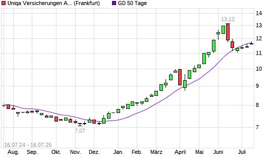 Mit dem Anstieg auf 11,78 EUR hat die Uniqa Versicherungen-Aktie am 15.07.2025 die 50-Tage-Linie nach oben gekreuzt.