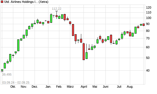 Mit dem Anstieg auf 89,98 EUR hat die United Airlines-Aktie (ISIN US9100471096) am 01.09.2025 ein neues 6-Monats-Hoch erreicht und damit den Kurs vom 03.03.2025 eingestellt.
