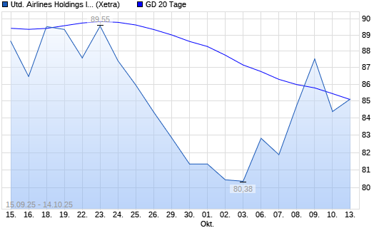 Mit dem Anstieg auf 85,68 EUR hat die United Airlines-Aktie am 13.10.2025 die 20-Tage-Linie nach oben gekreuzt.
