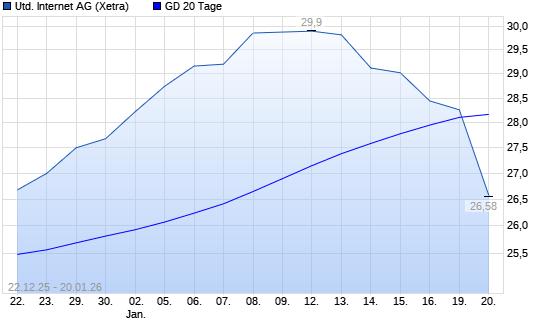 Mit dem Rücksetzer auf 28,24 EUR hat die United Internet-Aktie am 19.01.2026 die 20-Tage-Linie nach unten gekreuzt.