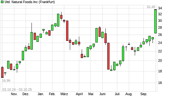 Mit dem Anstieg auf 33,03 EUR hat die United Natural Foods-Aktie (ISIN US9111631035) am 02.10.2025 ein neues 12-Monats-Hoch erreicht und damit den Kurs vom 18.02.2025 eingestellt.