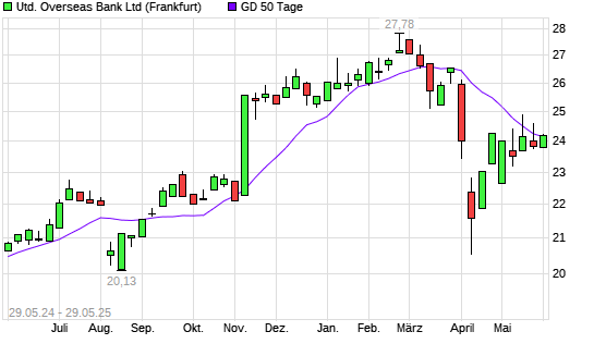 Mit dem Anstieg auf 24,22 EUR hat die United Overseas Bank-Aktie am 28.05.2025 die 50-Tage-Linie nach oben gekreuzt.