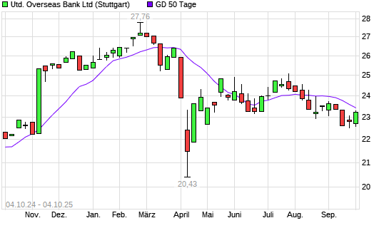 Mit dem Anstieg auf 23,55 EUR hat die United Overseas Bank-Aktie am 03.10.2025 die 50-Tage-Linie nach oben gekreuzt.