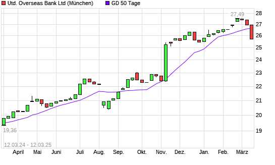 Mit dem Rücksetzer auf 26,00 EUR hat die United Overseas Bank-Aktie am 11.03.2025 die 50-Tage-Linie nach unten gekreuzt.
