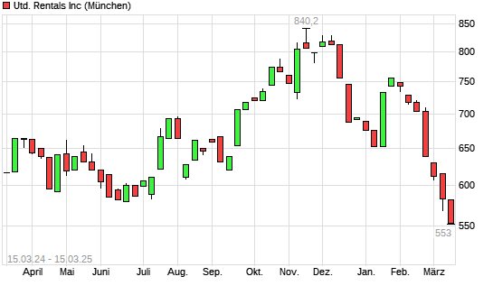 Mit dem Rücksetzer auf 547,80 EUR hat die United Rentals-Aktie (ISIN US9113631090) am 14.03.2025 ein neues 12-Monats-Tief erreicht und damit den Kurs vom 12.03.2025 eingestellt.