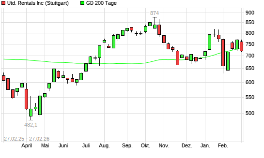 Mit dem Rücksetzer auf 717,20 EUR hat die United Rentals-Aktie am 26.02.2026 die 200-Tage-Linie nach unten gekreuzt.
