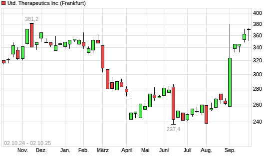 Mit dem Anstieg auf 373,20 EUR hat die United Therapeutics-Aktie (ISIN US91307C1027) am 01.10.2025 ein neues 6-Monats-Hoch erreicht und damit den Kurs vom 25.09.2025 eingestellt.