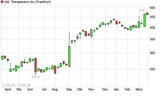 Mit dem Anstieg auf 470,10 EUR hat die United Therapeutics-Aktie (ISIN US91307C1027) am 16.03.2026 ein neues All-Time-High erreicht und damit den Kurs vom 12.03.2026 eingestellt.