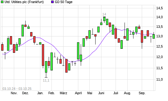 Mit dem Anstieg auf 13,20 EUR hat die United Utilities-Aktie am 02.10.2025 die 50-Tage-Linie nach oben gekreuzt.