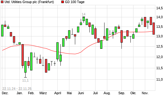 Mit dem Rücksetzer auf 13,10 EUR hat die United Utilities-Aktie am 21.11.2025 die 100-Tage-Linie nach unten gekreuzt.