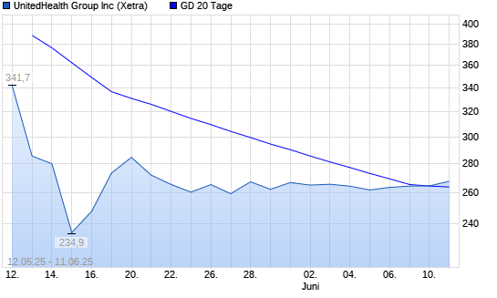 Mit dem Anstieg auf 265,05 EUR hat die UnitedHealth Group-Aktie am 10.06.2025 die 20-Tage-Linie nach oben gekreuzt.