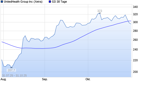 Mit dem Rücksetzer auf 297,50 EUR hat die UnitedHealth Group-Aktie am 30.10.2025 die 38-Tage-Linie nach unten gekreuzt.