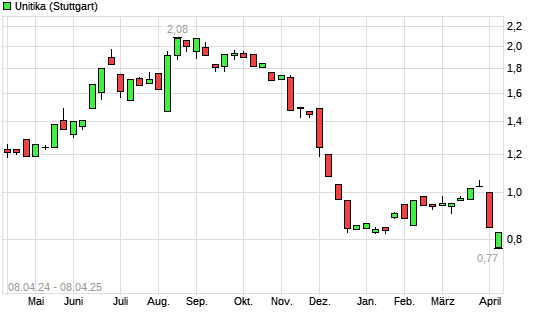 Mit dem Rücksetzer auf 0,64 EUR hat die Unitika-Aktie (ISIN JP3951200009) am 07.04.2025 ein neues All-Time-Low erreicht und damit den Kurs vom 08.01.2025 eingestellt.