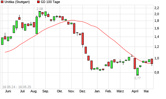 Mit dem Anstieg auf 0,99 EUR hat die Unitika-Aktie am 15.05.2025 die 100-Tage-Linie nach oben gekreuzt.