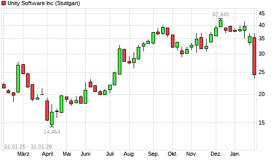 Mit dem Rücksetzer auf 24,22 EUR hat die Unity Software-Aktie (ISIN US91332U1016) am 30.01.2026 ein neues 6-Monats-Tief erreicht und damit den Kurs vom 01.08.2025 eingestellt.
