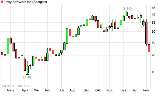 Mit dem Rücksetzer auf 21,52 EUR hat die Unity Software-Aktie (ISIN US91332U1016) am 03.02.2026 ein neues 6-Monats-Tief erreicht und damit den Kurs vom 30.01.2026 eingestellt.