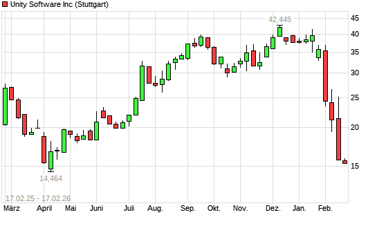 Mit dem Rücksetzer auf 15,59 EUR hat die Unity Software-Aktie (ISIN US91332U1016) am 16.02.2026 ein neues 6-Monats-Tief erreicht und damit den Kurs vom 13.02.2026 eingestellt.