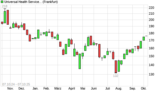 Mit dem Anstieg auf 176,00 EUR hat die Universal Health Services-Aktie (ISIN US9139031002) am 06.10.2025 ein neues 6-Monats-Hoch erreicht und damit den Kurs vom 03.10.2025 eingestellt.