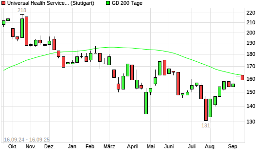 Mit dem Anstieg auf 163,00 EUR hat die Universal Health Services-Aktie am 15.09.2025 die 200-Tage-Linie nach oben gekreuzt.