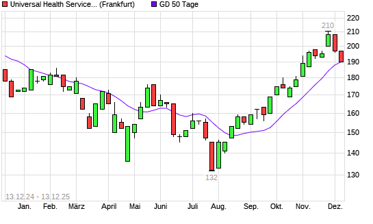 Mit dem Rücksetzer auf 190,00 EUR hat die Universal Health Services-Aktie am 12.12.2025 die 50-Tage-Linie nach unten gekreuzt.