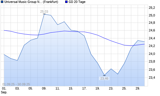 Mit dem Anstieg auf 24,34 EUR hat die Universal Music Group-Aktie am 29.09.2025 die 20-Tage-Linie nach oben gekreuzt.