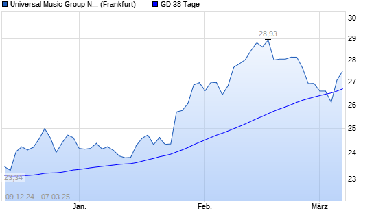 Mit dem Anstieg auf 27,08 EUR hat die Universal Music Group-Aktie am 06.03.2025 die 38-Tage-Linie nach oben gekreuzt.