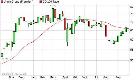 Mit dem Anstieg auf 66,56 EUR hat die Unum Group-Aktie am 01.10.2025 die 100-Tage-Linie nach oben gekreuzt.