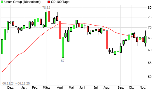Mit dem Anstieg auf 67,28 EUR hat die Unum Group-Aktie am 05.11.2025 die 100-Tage-Linie nach oben gekreuzt.