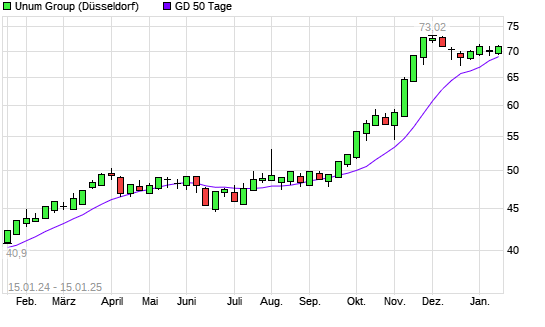 Mit dem Anstieg auf 70,60 EUR hat die Unum Group-Aktie am 14.01.2025 die 50-Tage-Linie nach oben gekreuzt.