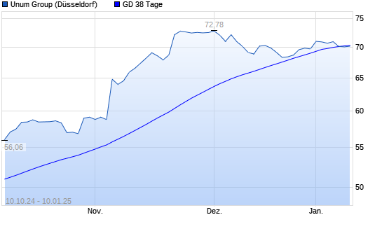 Mit dem Rücksetzer auf 69,88 EUR hat die Unum Group-Aktie am 09.01.2025 die 38-Tage-Linie nach unten gekreuzt.