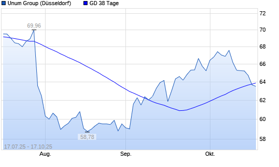Mit dem Rücksetzer auf 63,16 EUR hat die Unum Group-Aktie am 16.10.2025 die 38-Tage-Linie nach unten gekreuzt.