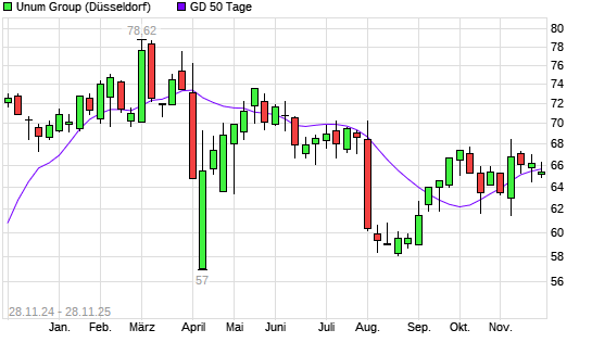 Mit dem Rücksetzer auf 65,06 EUR hat die Unum Group-Aktie am 27.11.2025 die 50-Tage-Linie nach unten gekreuzt.