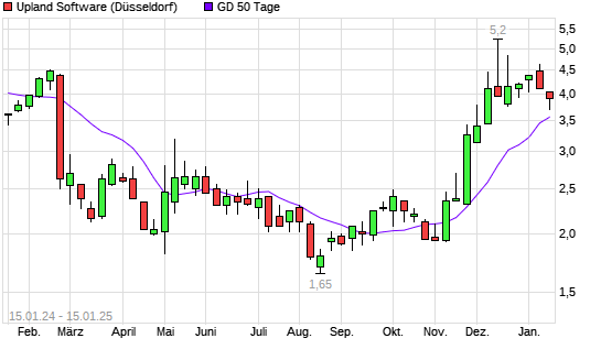 Mit dem Rücksetzer auf 3,74 EUR hat die Upland Software-Aktie am 14.01.2025 die 50-Tage-Linie nach unten gekreuzt.