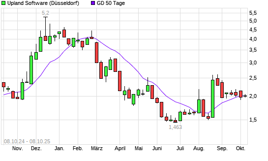 Mit dem Rücksetzer auf 2,01 EUR hat die Upland Software-Aktie am 07.10.2025 die 50-Tage-Linie nach unten gekreuzt.Die Upland Software-Aktie befindet sich seit dem 28.03.2025 im langfristigen ...weiterlesen