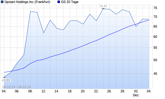 Mit dem Anstieg auf 68,80 EUR hat die Upstart Holdings-Aktie am 03.12.2024 die 20-Tage-Linie nach oben gekreuzt.