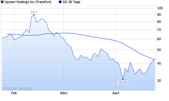 Mit dem Anstieg auf 42,90 EUR hat die Upstart Holdings-Aktie am 25.04.2025 die 38-Tage-Linie nach oben gekreuzt.